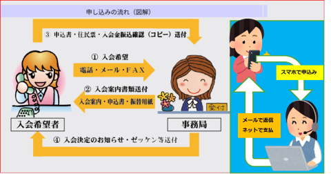 ①「入会希望」とWEBからのメール、又は、電話(川瀬)等で伝えてください。 |
